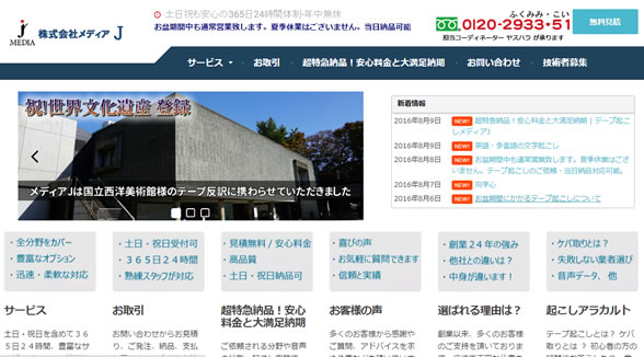 サーバの引越しから、現在、ホームページの管理をさせていただいております「テープ起こし メディアJ」様 現在のホ …